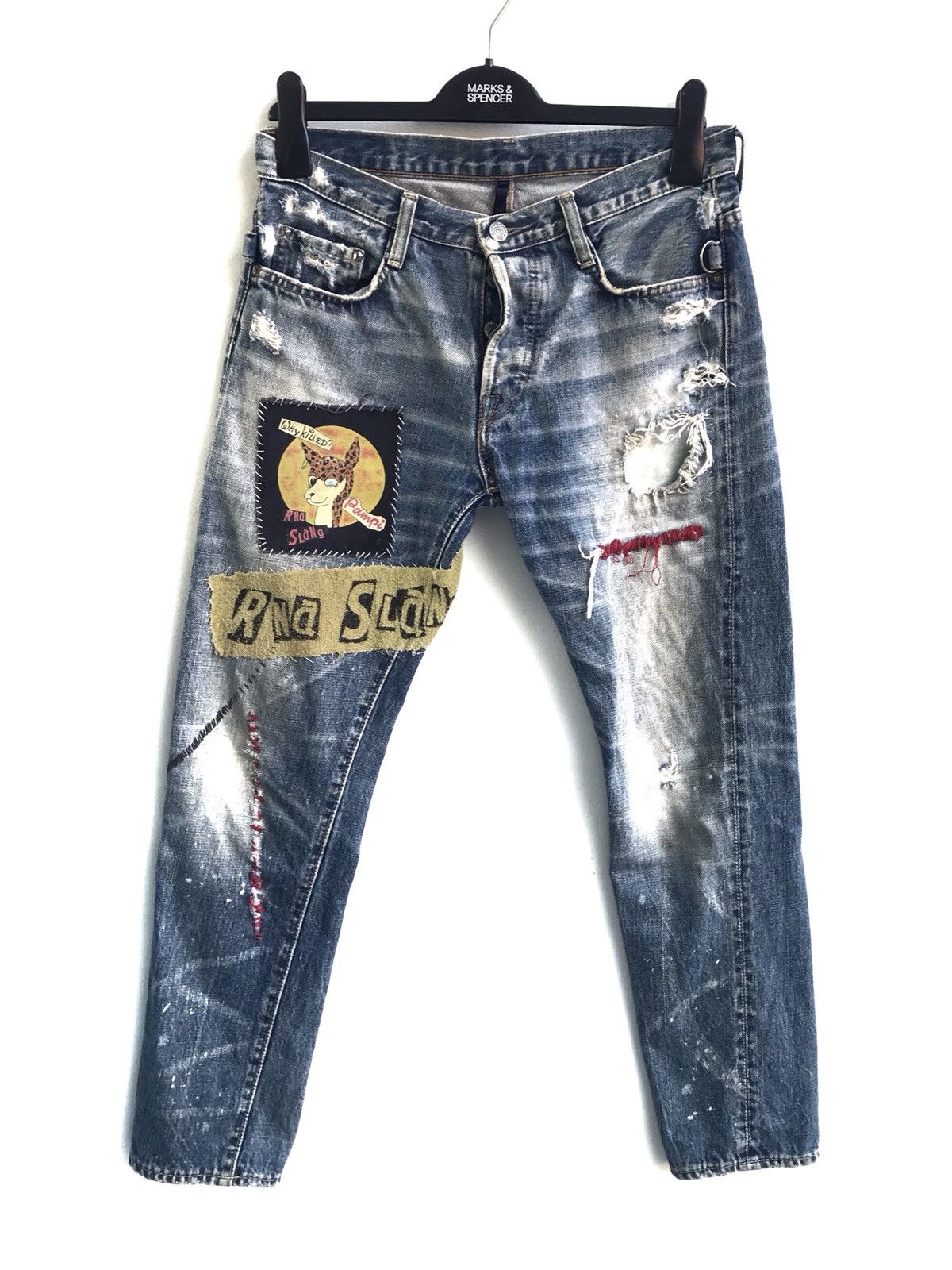 Distressed Rna Slang Patches Destroyed Punk Style Denim Pant