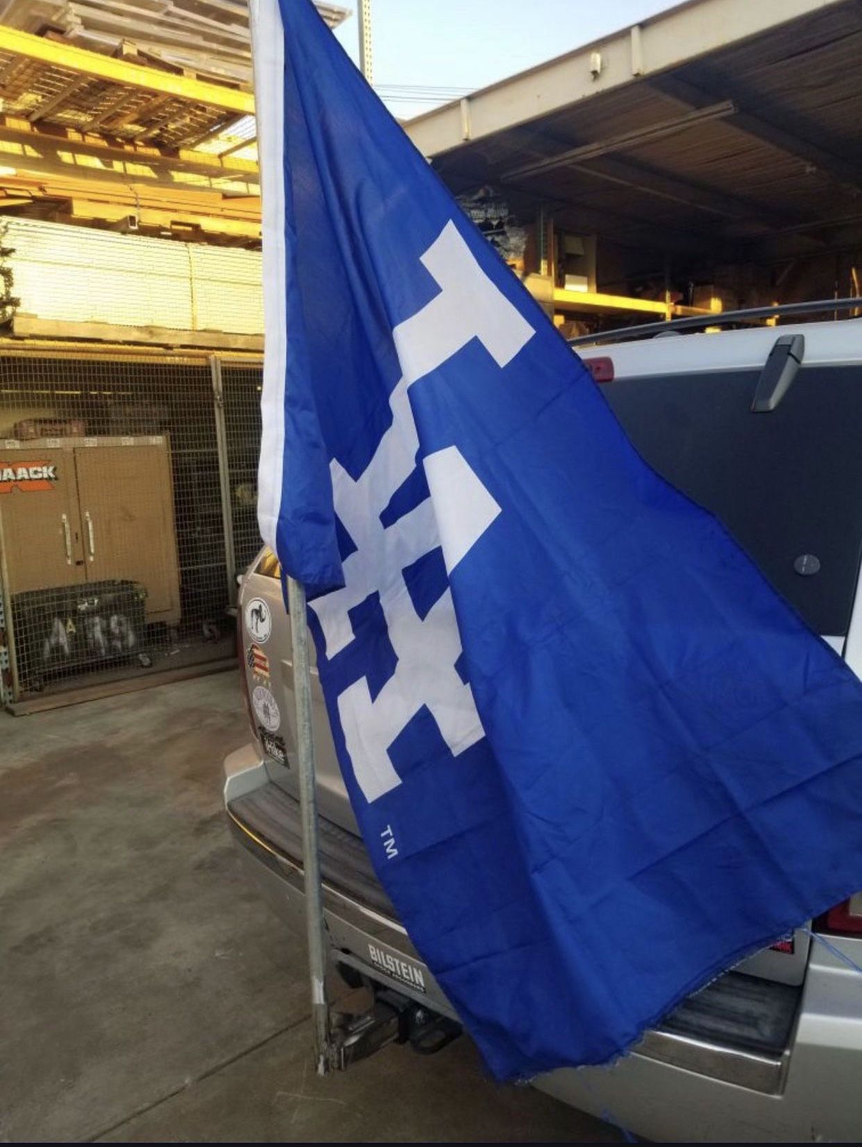 | Product Features | Flag pole and hitch Pole 6’ high Hitch 2”x 12”Rams49ersDodgers Lakers LA kings NFLNiKeOff road 4x4Jeep ToyotaFord Tacoma North face 4 of July | ||