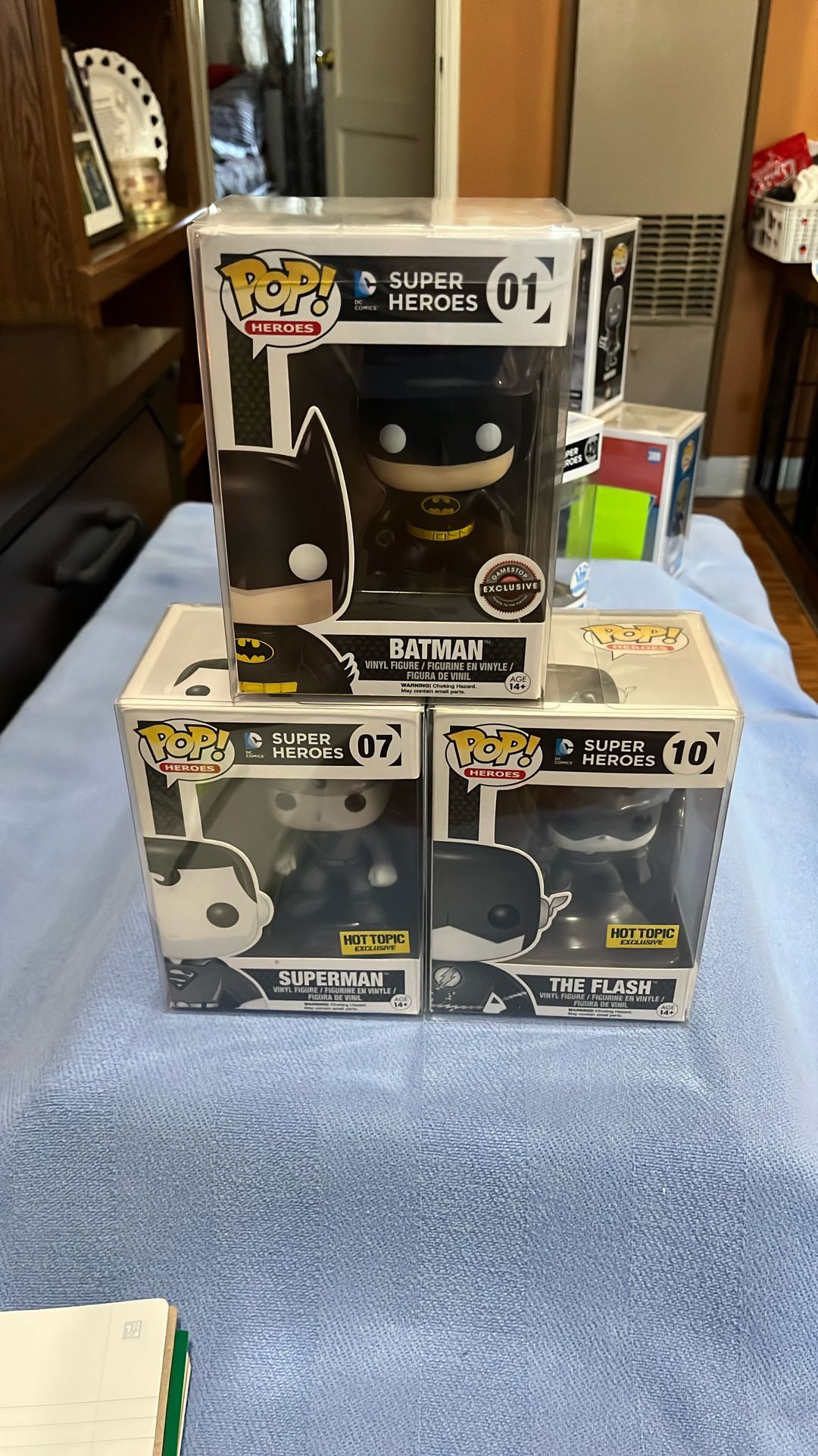 | Product Features | Superman black and whiteThe flash black and whiteBatman 01 GameStop exclusive | ||