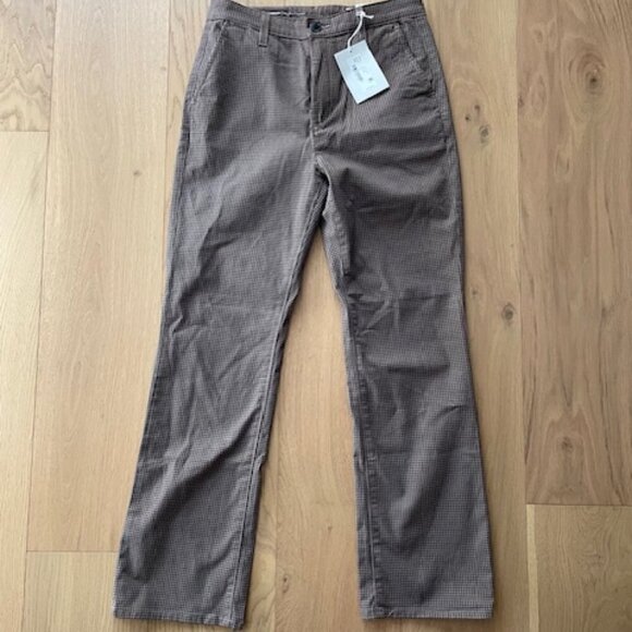 | Product Features | These tailored pants feature a checkered pattern in khaki and brown. Would look great with loafers and a chunky sweater or denim button down for work or weekends. They are new with tags and come from a smoke and pet free home. Inseam: 27.5" InseamWaist lying flat: 14" acrossRise: 11" | ||