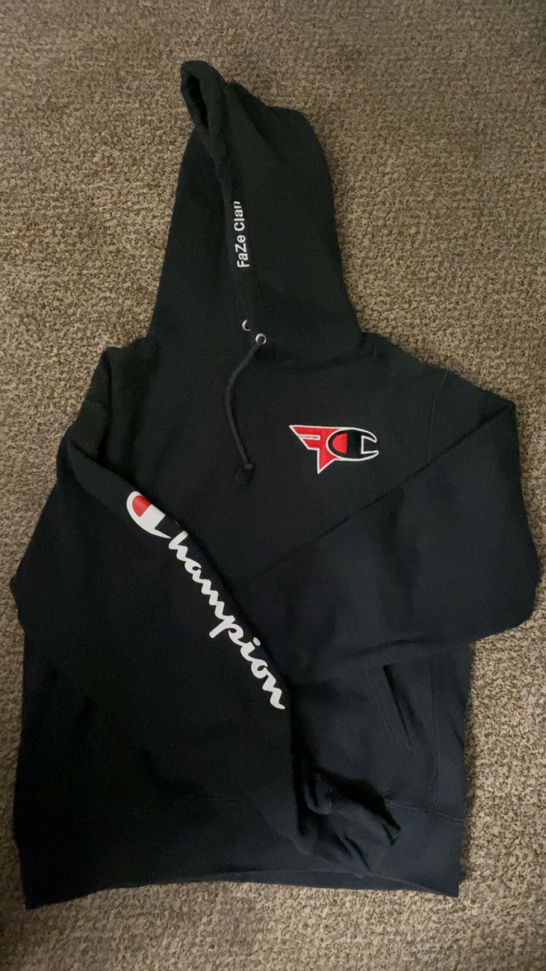 - Clothing > Shoes > & Accessories >Men's clothing > Faze x Champion Hoodie Black