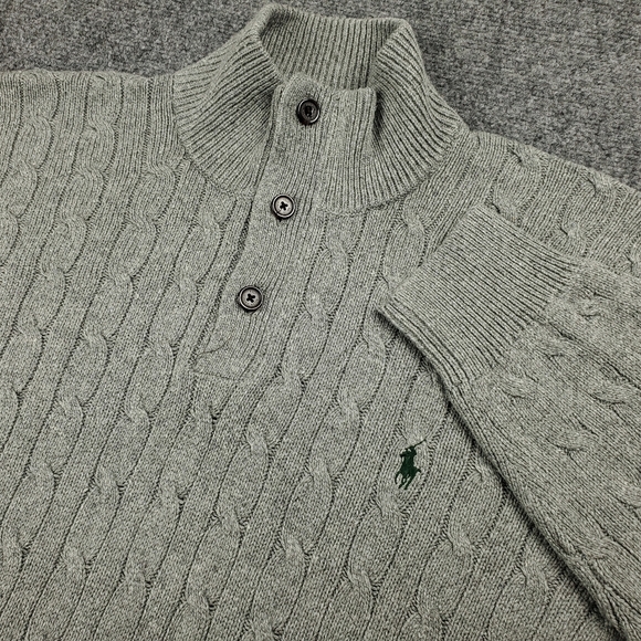 - Men >Sweaters > Polo Ralph Lauren Cable Knit Sweater Quarter Zip Mens 2XL 100% Tussah Silk Gray