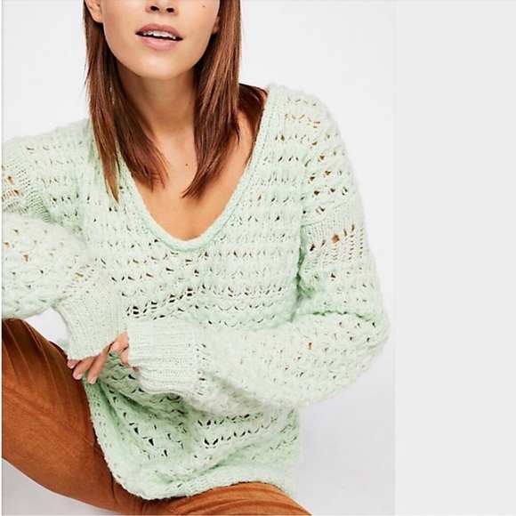 - Women >Sweaters >V-Necks > Free People Crashing Waves Mixed Knitting Wool Blend Sweater Womens Medium
