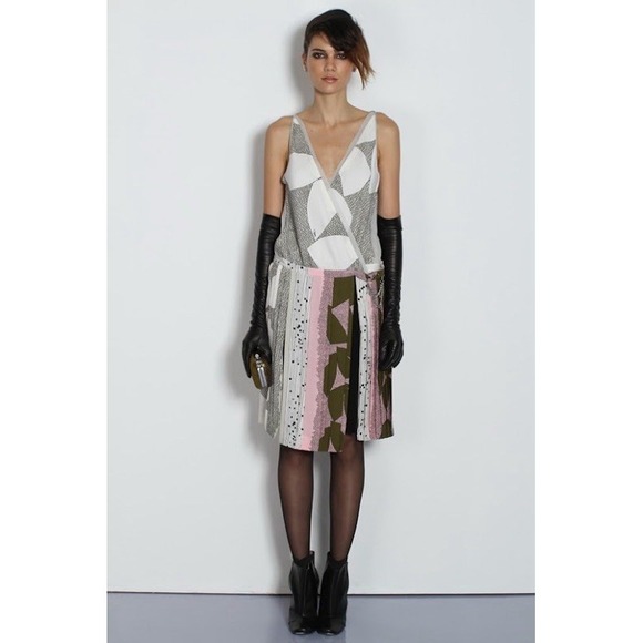 - Women >Dresses > Diane von Furstenberg 2 Wrap Dress Silvertone Chain Close Mixed Print DVF
