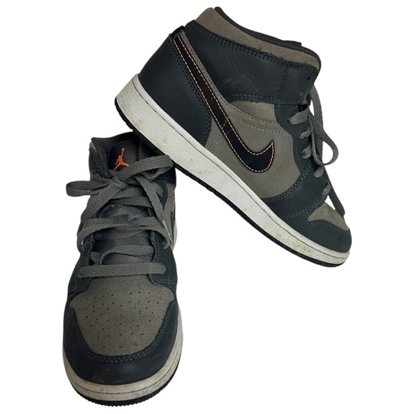 | Product Features | Nike Jordan 1 Mid SE Shoes Boys SZ. 5.5Y Black GreyOrange Basketball Sneaker FQ8341-017 Nike RetroGood preowned condition. Light wear through out. Some Light debris. No major flaws, rips or tears3/DC | ||