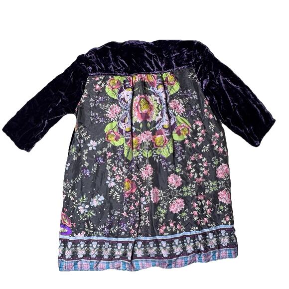 Johnny Was Silk Purple Velvet Canilla Floral Back Blouse Top S