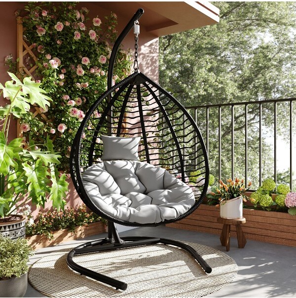 - Home & Living >Outdoor >Outdoor Furniture >Lounge Chairs & Ottomans > Moda Furnishings ModaFurnishingsHDPEWickerHangingChairwithCushions&AdjustableFeet–FoldableEggChairforIndoor&OutdoorRelaxation