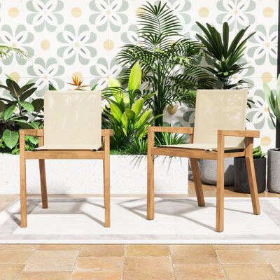 - Home & Living >Outdoor >Outdoor Furniture >Chairs > Latitude Run Set of 2 Outdoor Wooden Dining Chairs with Mesh Seating and Durable Frame for Patio or Poolside