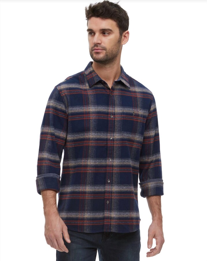 - Men's Fashion >Clothing >Shirts >Long Sleeve Shirts > Flags & Anthem Fisher Long Sleeve Flannel Shirt In Navy/red/yellow