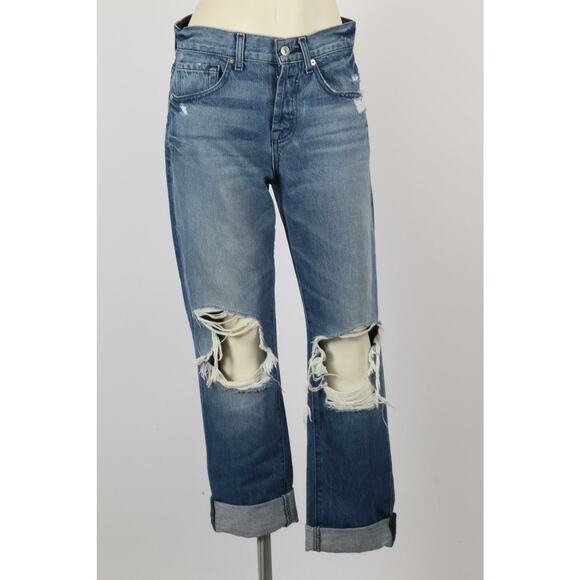 - Women >Jeans >Straight Leg > 7 FOR ALL MANKIND Blue Denim Ripped Distressed Straight Leg Jeans Pants Size 26