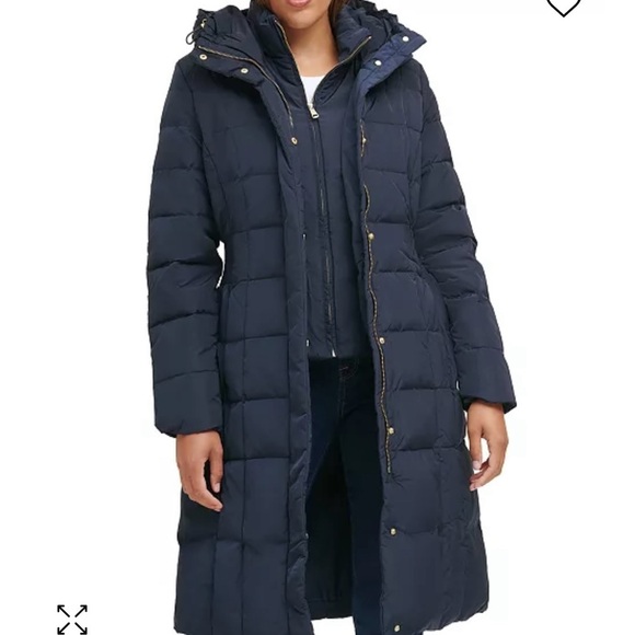 | Product Features | What wind chill? Keeping cozy is supremely easy with the layered design of Cole Haan's chic, knee-length puffer coat!HeavyweightLinedStand collar; attached hoodzipper closure at attached interior vestLong sleevesImportedAllover quilting; water-resistant fabricDown and feathers fillZip pockets at hipsRuched detail at side waistMachine washableShell, lining & hood fill: polyester; fill: down/feathersB18 | ||