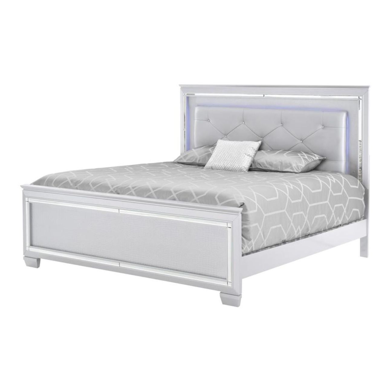 | Product Features | ISABEL GRAY collection from DORADO FURNITURE QUEEN BED FRAME- LED LIGHTS Nightstand- 2 drawers Vanity | ||