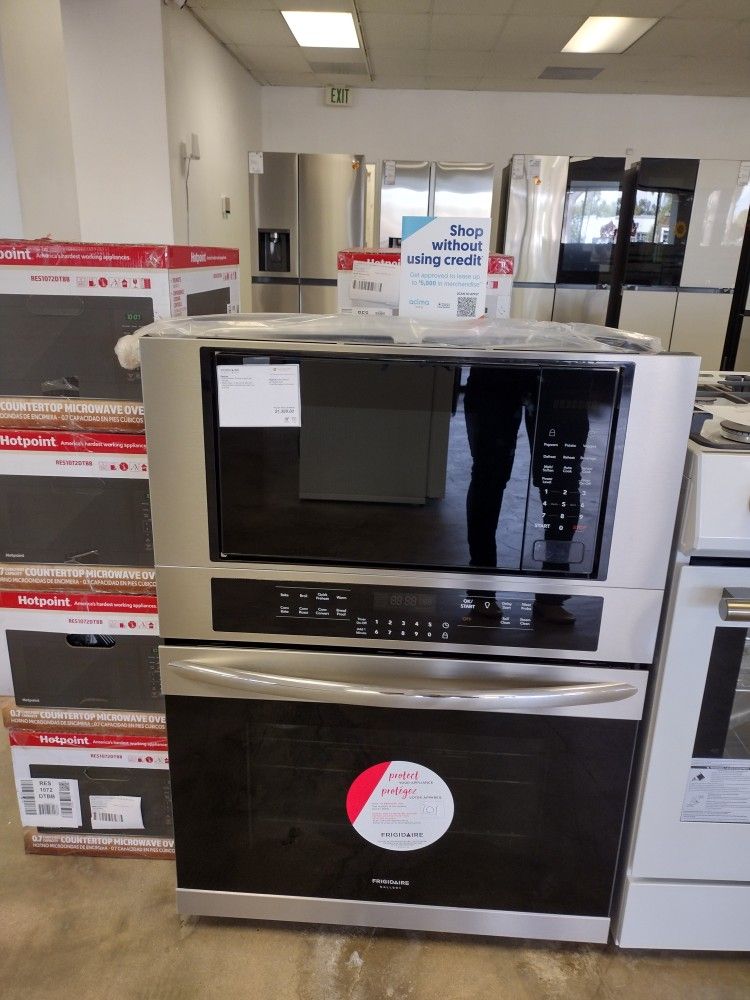 | Product Features | New Frigidaire Oven and Microwave combination Special Price, warranty, New. Quick Preheat.Preheat in just a few minutes, steam clean. Electric wall 30". Warranty. Financing Program.O down. No credit check. 90 days to pay and no interest | ||