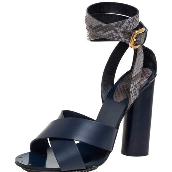 - Women >Shoes >Heels > Gucci Blue/Grey Python and Leather Crisscross Ankle Strap Sandals Size 38