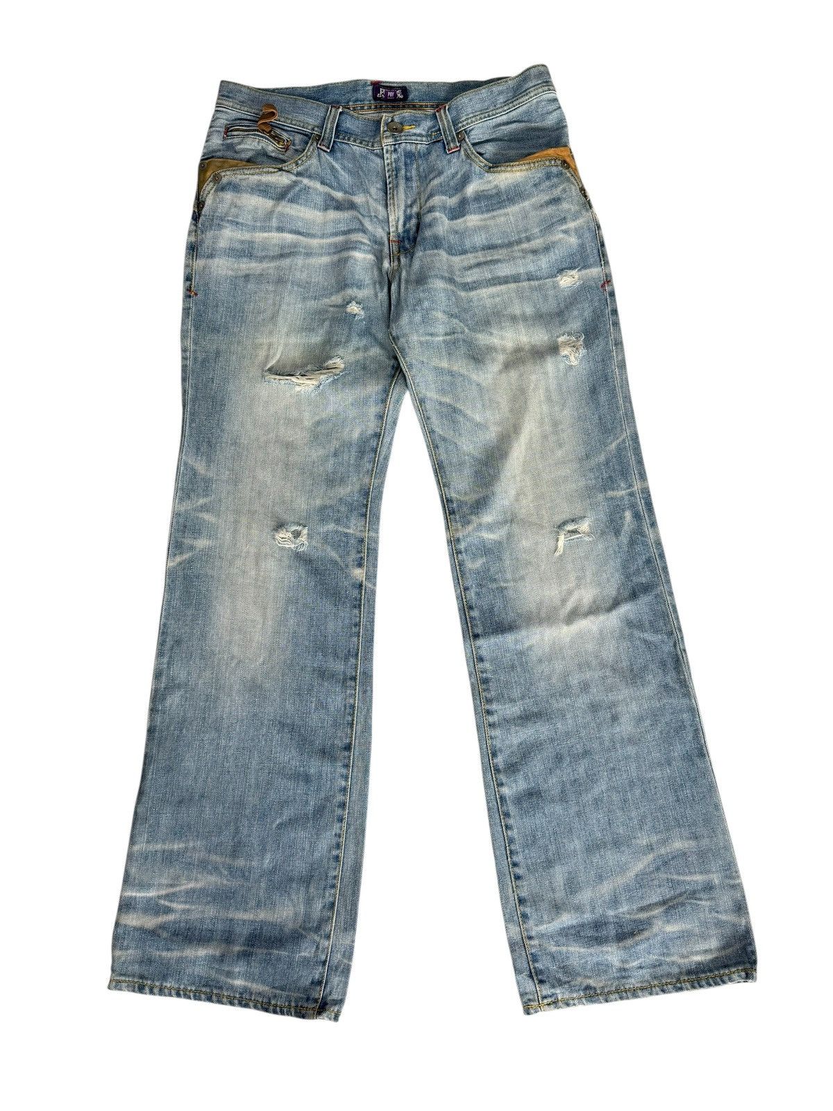 - Menswear >Bottoms >Denim > Japanese Purple & Yellow Distressed Denim Jeans