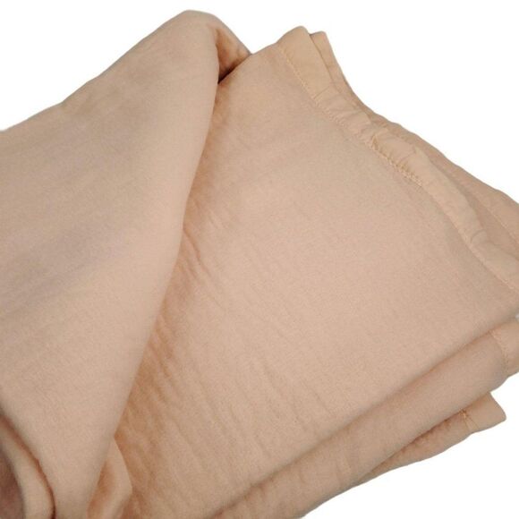 - Home >Bedding >Blankets & Throws > Vintage Pink Peach Satin Edge Blanket Made in USA