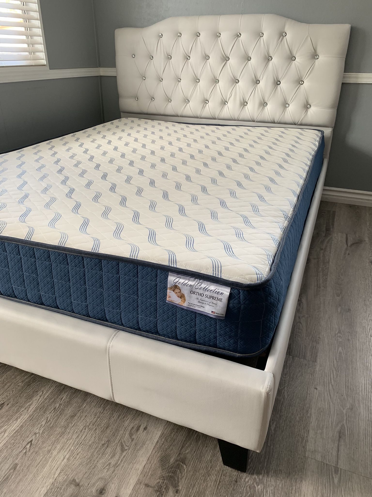 - Home & Garden >Furniture > Queen Size White Crystal Bed With Orthopedic Mattress