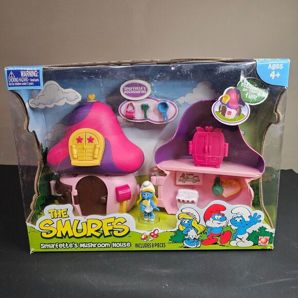 - Kids >Toys >Action Figures & Playsets > NIB Smurfette Mushroom House Articulated Playset 6 pc Jakks Pacific 2008 Smurfs