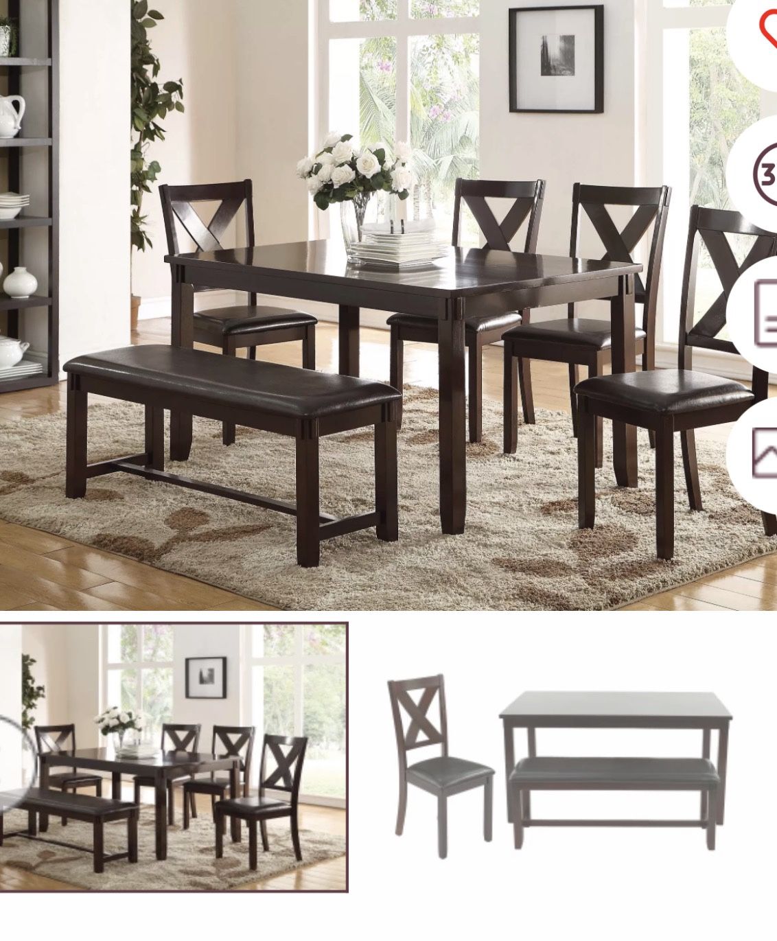 - Home & Garden >Furniture > Dining Table Set With Chairs And Bench