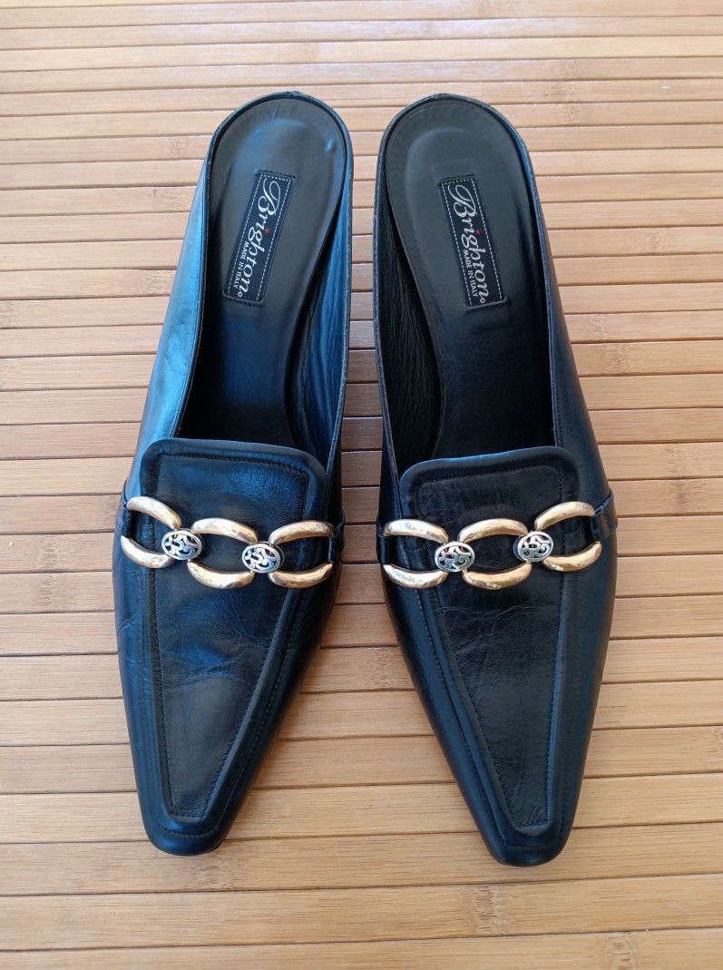 | Product Features | ❤️ BRIGHTON, Ladies Black Leather Heeled Slip On Shoes!❤️ Size: 10 (Made in Italy) No Box.❤️ Excellent Condition!❤️ CASH or VENMO PLEASE! THANK YOU! =)❤️ PICK UP OFF LOS ALISOS IN FALLBROOK!Womens Slides, Mule, Slip On | ||