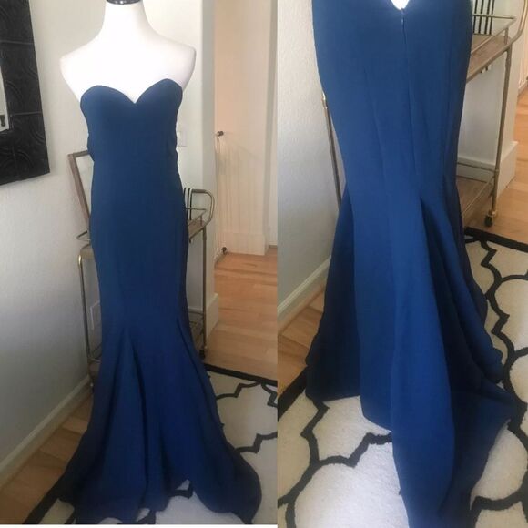 | Product Features | #120Rubber Ducky brand blue Strapless Maxi Dress• A strapless sweetheart bust with a fitted shape because of a hidden V-bar at front• boning and elastic at back• princess seams• woven material• maxi skirt and hidden bottom band for added structure• Hidden back zipper with clasp.• Fully Lined.• Self: 100% Polyester. Lining 1: 100% Polyester. Lining 2: 97% Cotton, 3% Spandex.Hand Wash Cold or Dry Clean.Made in the U.S.A.New W/O TagsGreat for wedding bridesmaid or Mardigras prom gown ball | ||