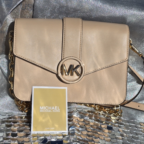 Michael Kors Carmen Medium Convertible Shoulder Crossbody Bag Buff Leather