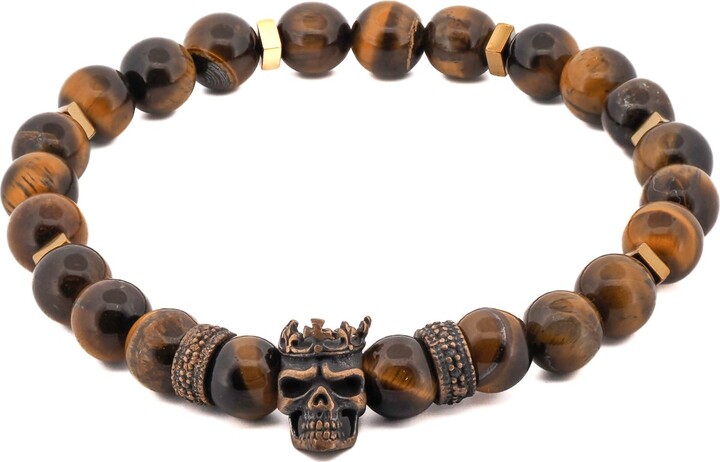 - Men's Fashion >Accessories >Jewelry > Ebru Jewelry Brown / Silver King Skull Tiger's Eye Stone Beaded Bracelet - Brown