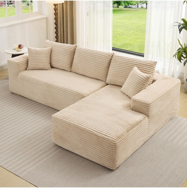 | Product Features | Details:TruAIR 108" Beige Cloud Sectional Sofa ¨C Right Facing Chaise (No Assembly Required)Modular Customizable Design2-piece L-shape configuration (68.9"D x 108"W x 34.3"H)Converts to straight sofa or bedUltra-Plush ComfortCorduroy upholstery with cloud-like softness16.5" seat height for deep loungingFamily-Friendly FeaturesIncludes 5 removable pillow coversPet-safe fabric with rounded cornersHassle-Free SetupNo assembly required (expands in 72 hours)2-box vacuum-packed deliveryLow-Profile Stability151 lbs floor-hugging baseEasy-clean design (wipe/vacuum) | ||