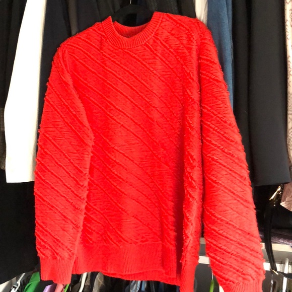 | Product Features | Proenza Schouler orange red wool sweater size medium very very lightly worn. Fringe detail. | ||
