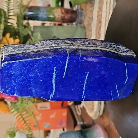 | Product Features | Beautifully Polished Blue Lapis Lazuli with Pyrite- 2 lb 4 oz (1026g) This listing is for the actual item pictured. What you see is what you will receive. These pictures are NOT filtered or touched up and taken with a ring lightShe's an extroidinary electric Blue!! Born in Afghanistan and Absolutely Gorgeous!!.Lapis Lazuli, or lapis for short, is a deep-blue metamorphic rock used as a semi-precious stone that has been prized for thousands of years for its intense color. By the end of the Middle Ages, lapis lazuli began to be exported to Europe, where it was ground into powder and made into ultramarine, the finest and most expensive of all blue pigments. Ultramarine was used by some of the most important artists of the Renaissance and Baroque, Mines in northeast Afghanistan continue to be a major source of lapis lazuli. The most important mineral component of lapis lazuli is lazurite (25% to 40%), a blue feldspathoid silicate mineral. Most lapis lazuli also contains calcite, sodalite, and pyrite. Measurements are approximate as the shape is irregular. I include a small freebie with every order! | ||