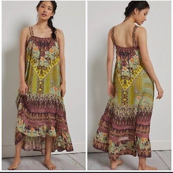 Anthropologie Lovett Tiered Maxi Botanical Dress Size Small Small
