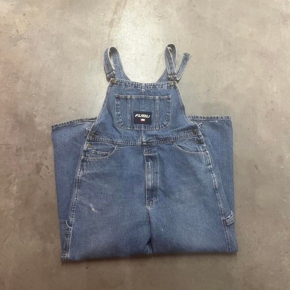 - Women >Pants & Jumpsuits >Jumpsuits & Rompers > Vintage FUBU men's denim overalls embroidered loose hiphop USA made xxl