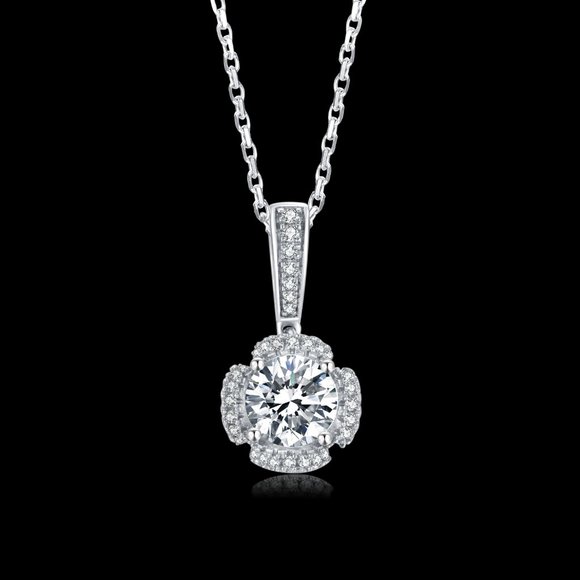 - Women >Jewelry >Necklaces > Brilliant Moissanite Diamond Pendant with a Halo of Diamonds around center stone