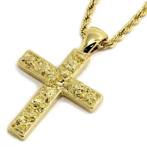 - Men >Accessories >Jewelry > 14k Gold Cross 24 Rope Chain + Pendant