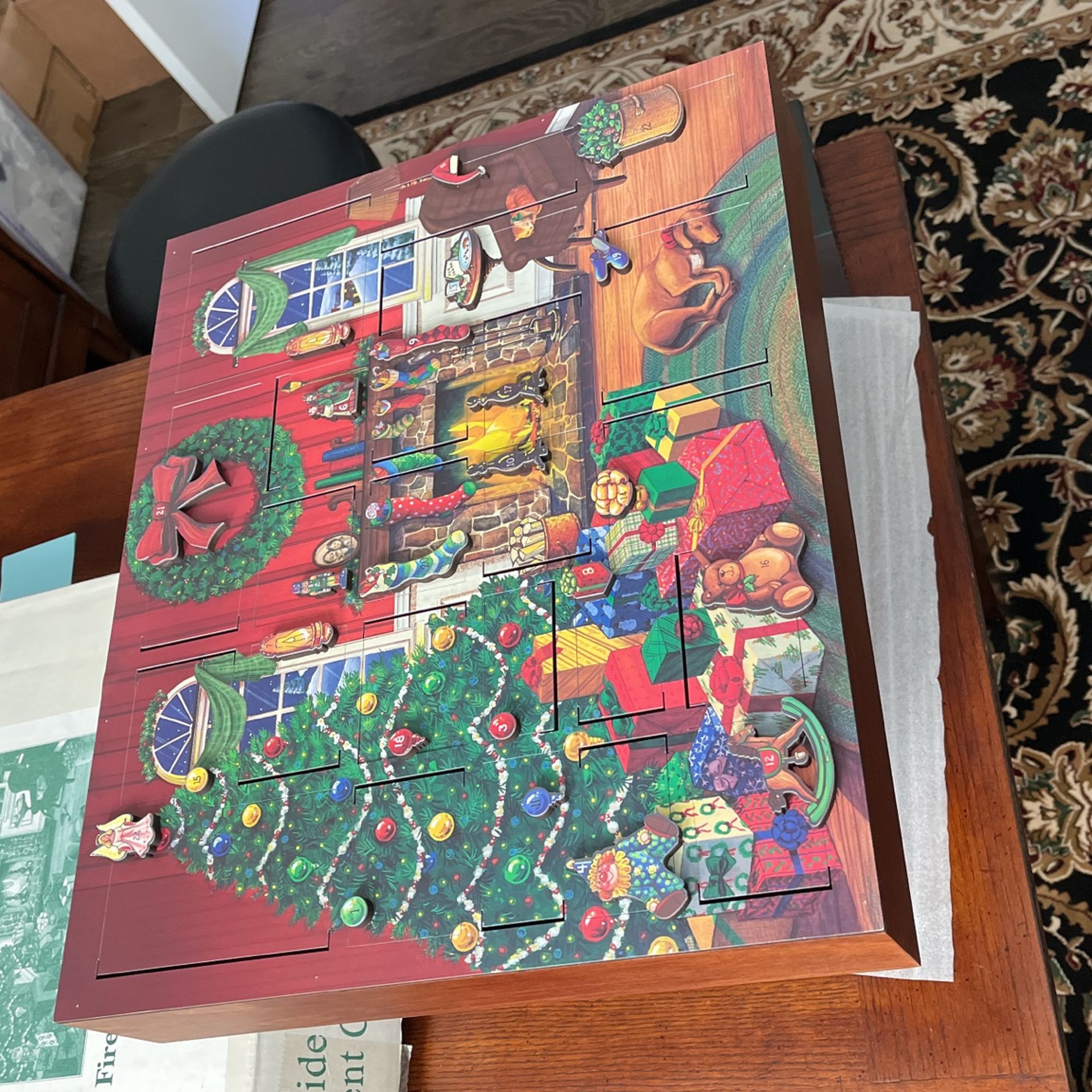 - Home & Garden >Home decor >Holiday & Seasonal > Fireside Wood Advent Calendar Box Traditions Like New