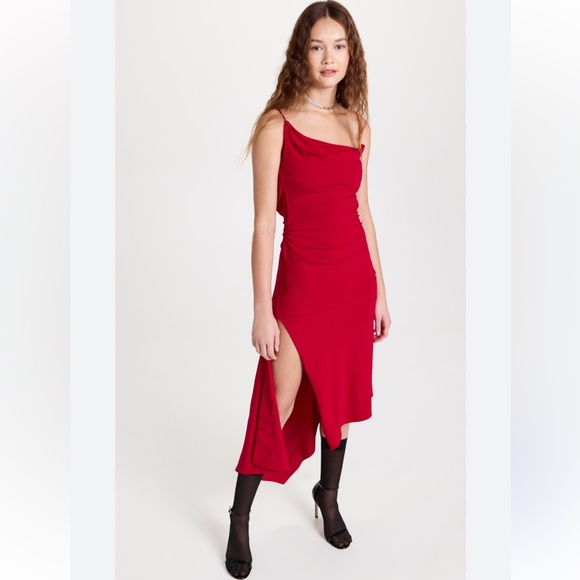New! MONSE Draped Asymmetric Slip Tank Dress in Crimson Sz 12 $1,190