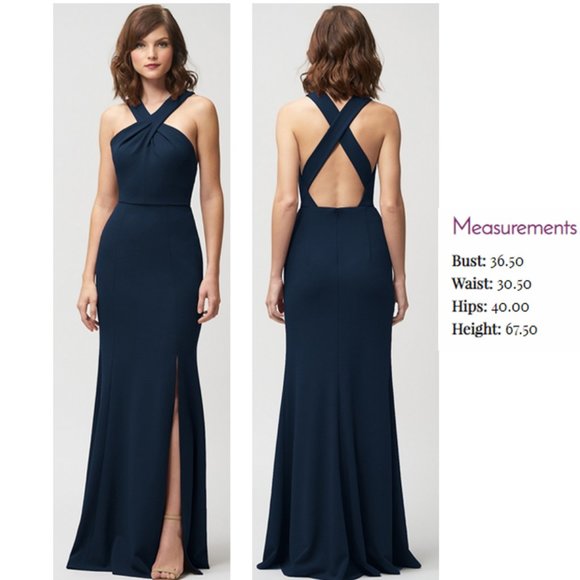 | Product Features | The Kayleigh dress features a trendy X-front detail with a dramatic open back. The skirt is fitted with an above the knee slit to accentuate the figure. The stretchy material makes for a more comfortable and easy fit.Color: MidnightFabric: Knit CrepeWorn one time when I was a bridesmaid. My measurements:Bust: 36.50Waist: 30.50Hips: 40.00Height: 67.50 | ||