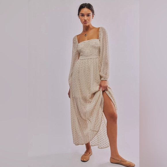 | Product Features | New with tags Free People Malina Maxi DressSize extra largeMade to be dressed up or down, this feminine maxi is featured in an eyelet fabrication and babydoll-inspired silhouette with embroidered detailing and semi-sheer sleeves.Fit: Babydoll style, maxi lengthFeatures: Eyelet fabrication, embroidered detail at bust, square neckline, semi-sheer sleeves with elasticated cuffs, low open-back with smocked band, linedWhy WeIt: This versatile maxi can be paired with your favoriteboots or a femme ballet flat. | ||